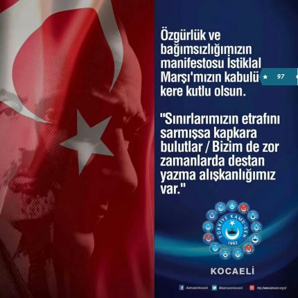 Büyük Üstad Cemil Meriç, Kültürden İrfana da M.Akif Ersoy’la ilgili diyor ki; “Emperyalizm hiç bir zaman Akif kadar müthiş bir düşman tanımamıştır. Akif hem bir ülkenin sesidir, hem de bütün bir kıtanın. Bu çığlığa kulaklarımızı ve gönlümüzü açık bulunduramazsak hatalarımızın sonu gelmez.” Özgürlük ve bağımsızlığımızın manifestosu İstiklal Marşı’mızın kabulü 97 kere kutlu olsun. “Sınırlarımızın etrafını […]