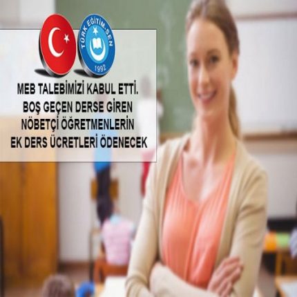 MEB TALEBİMİZİ KABUL ETTİ. BOŞ GEÇEN DERSE GİREN NÖBETÇİ ÖĞRETMENLERİN EK DERS ÜCRETLERİ ÖDENECEK