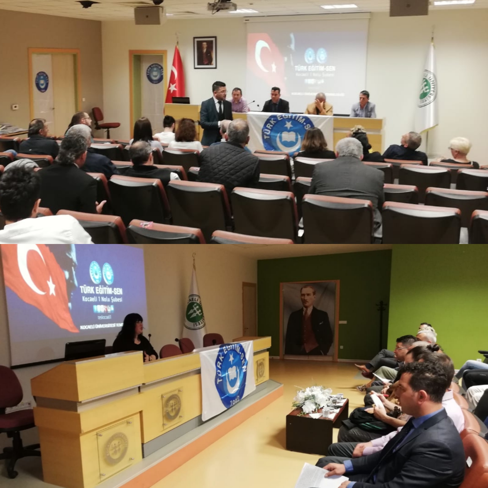 Kocaeli Üniversitesi Türk Eğitim-Sen Temsilciliği ile Kocaeli 1 nolu Şube yönetiminin birlikte organize ettiği Kocaeli Üniversitesi tanışma ve istişare toplantısına düzenlendi. Kocaeli Üniversitesi Türk Eğitim-Sen temsilcisi Hüsnü Temkiner konuşma yaptı. “Kocaeli Üniversitesinde Türk Eğitim Sen ailesi olarak varlığımızı sürdürme çabamız devam etmektedir. Ancak taraf sendikacılık anlayışı ile üniversitemizde sendikacılık faaliyetleri farklı yerlere gelmiştir. Personellerimizin genele hitap eden sorunları eşit ve adaletli çözülmeyerek, bireysele indirilmiş sendikamıza üye ol işini halledelim gibi sendikacılıktan uzak adamcılık halini almıştır. Türk Eğitim-Sen ailesi olarak üniversite’de sendikacılık anlayışını değiştirmek, Sendikamızın Kocaeli 3. Nolu şubesini açmak ve kurumda yetkili sendika olup üyelerimize daha güçlü bir hizmet sağlamak amacı ile emin adımlarla yola çıkıldığını istişare etmekteyiz” şeklinde konuşmasını tamamlanmıştır.