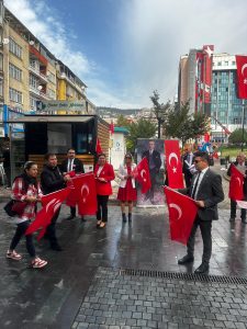 Cumhuriyet Bulvarı üzerinde (Yürüyüş Yolu) vatandaşlarımıza bayrak ve broşür dağıttık.